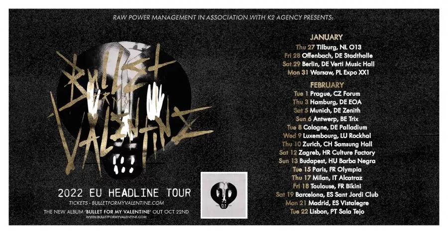 Bullet For My Valentine Tour 2022 13 02 2022 Budapest Hungary Concerts Metal Calendar